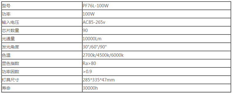 PF76L-100W產品參數